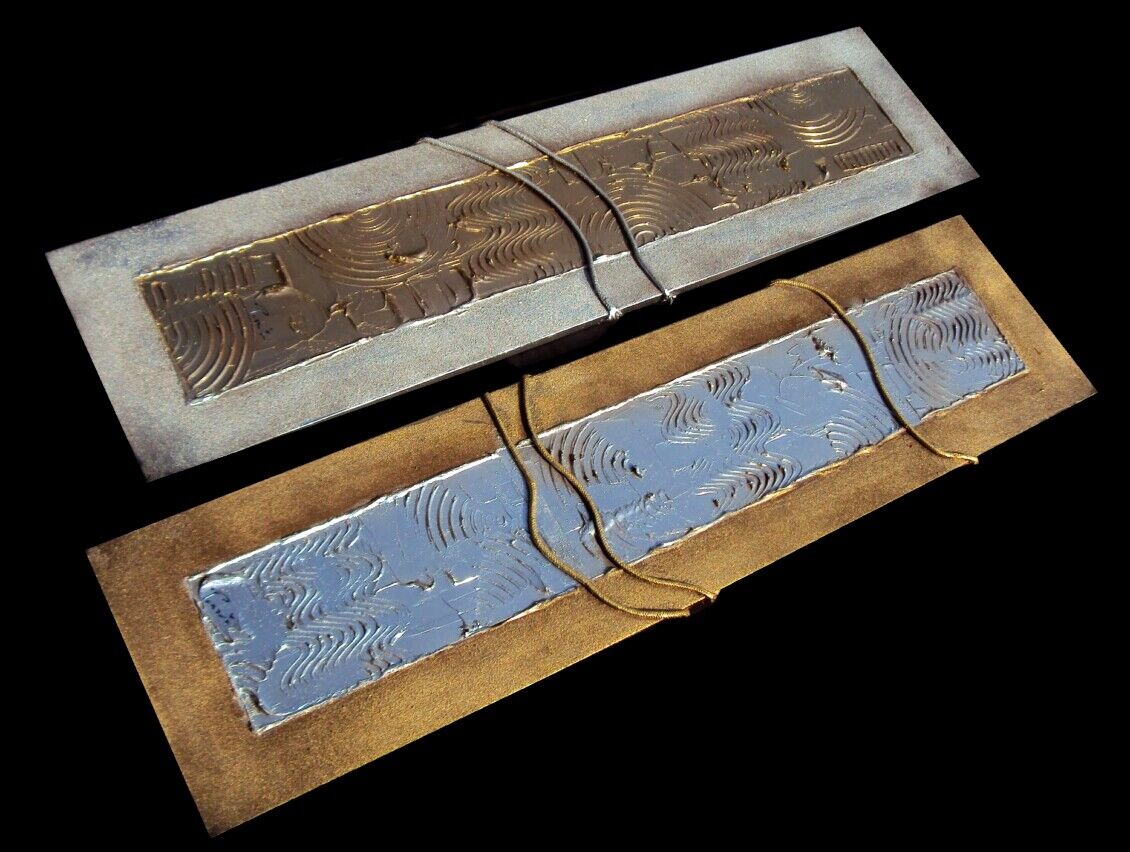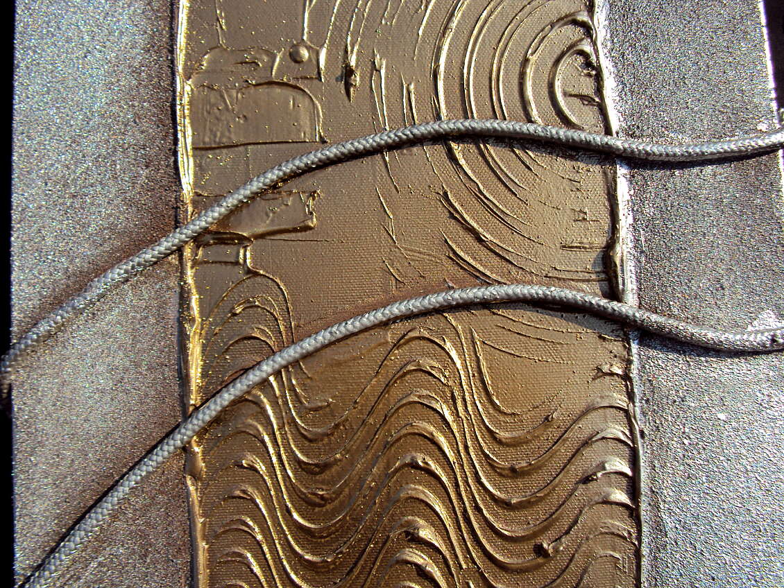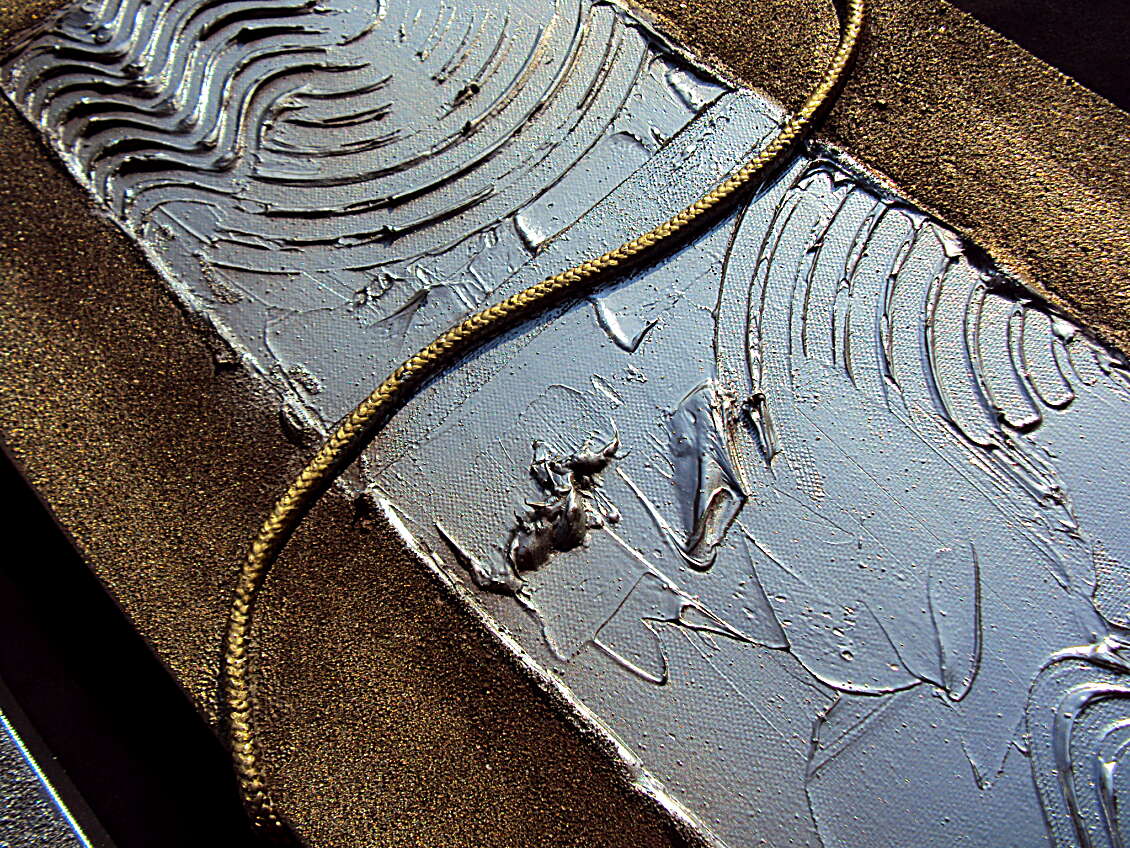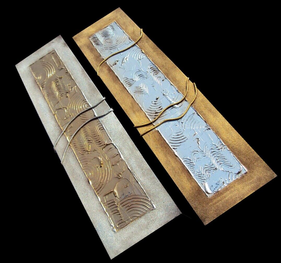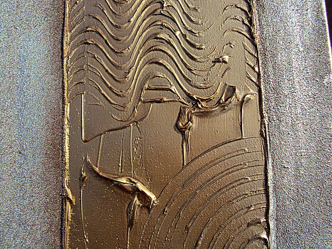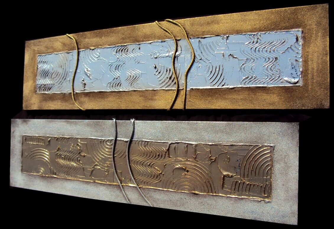 OPERA REALIZZATA MEDIANTE SPECIALE TECNICA MISTA COLORI ACRILICI, SABBIE DI FIUME, METALLICI, INSERTI . OPERA COMPOSTA DA 2 TELE 30 X 120 X 2 CM - PREZZO 270,00 EURO + SP SP.