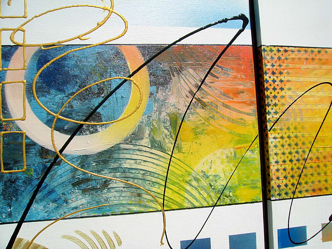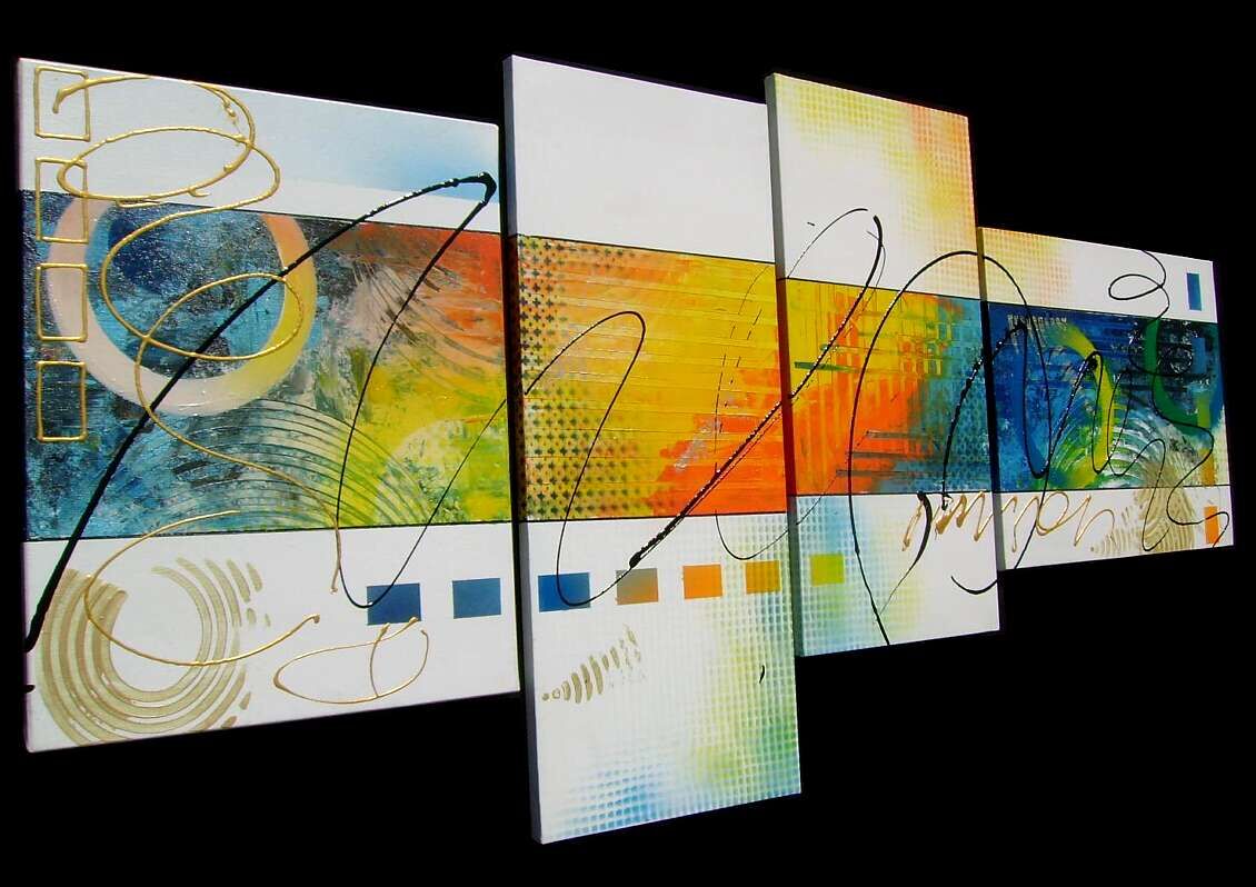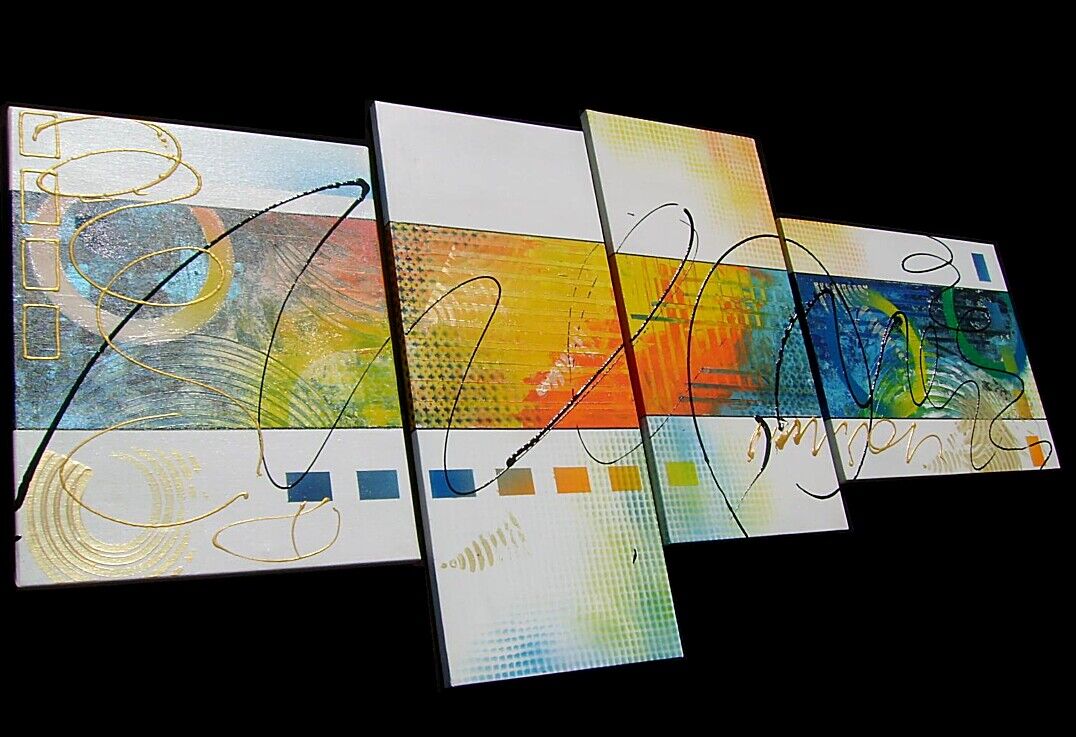 Opera realizzata in tecnica mista , mediante utilizzo di colori acrilici , pigmenti metallici , colori ad olio . L'opera e' composta da 1 tela 40 x 50 x 2 cm + 1 tela30x70x2 + 1 tela30x60x2 + 1 tela 50x40x2 . Il prezzo di vendita e' di 220 ,00 euro+spsp