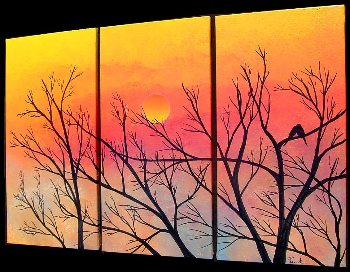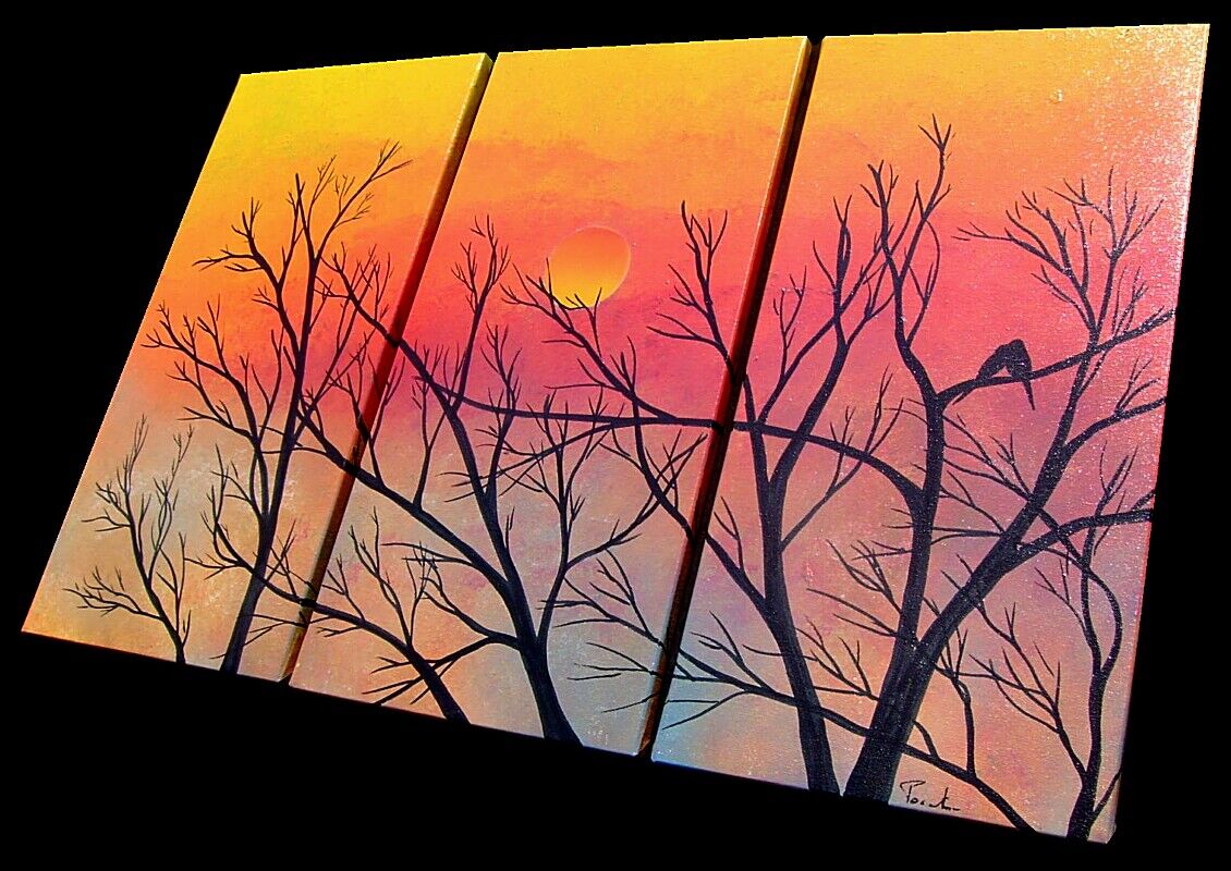 Opera realizzata in tecnica mista , mediante utilizzo di colori acrilici , pigmenti metallici , colori ad olio. L'opera e' composta DA 3 tele 30 x 60 x 2 cm . Il prezzo di vendita e' di 220 ,00 euro+spsp.
