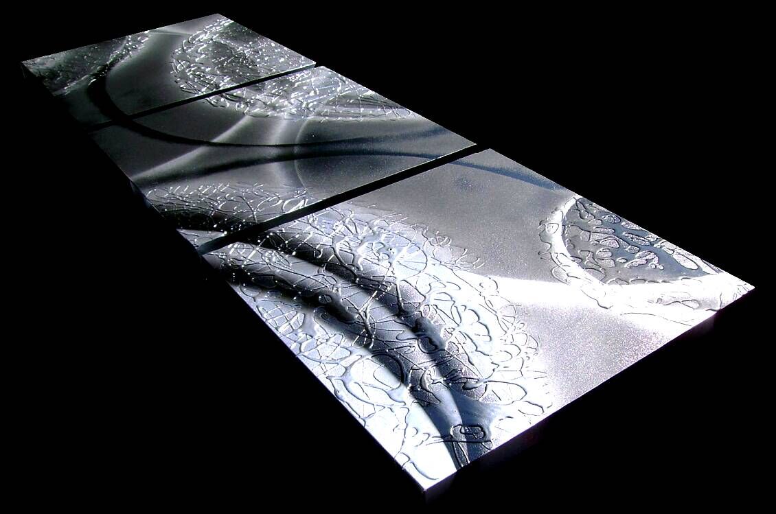 Opera realizzata in tecnica 3D mista ,mediante l'utilizzo di colori acrilici , pigmenti metallici , colori ad olio. L'opera , e' composta da 3 tele 50x50x4 cm . Il prezzo di vendita e' di 240 ,00 euro+spsp