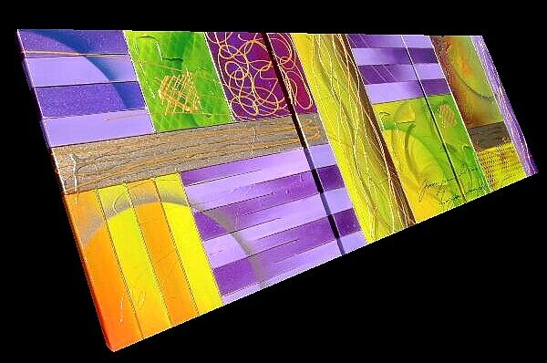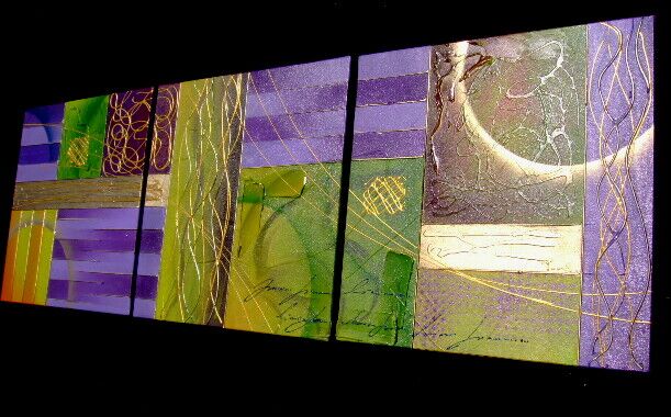 Opera realizzata in tecnica mista ,mediante l'utilizzo di colori acrilici , colori ad olio e pigmenti metallici. L'opera , e' composta 3 tele 50x50x2 cm. Il prezzo di vendita e' di 230 ,00 euro+spsp
