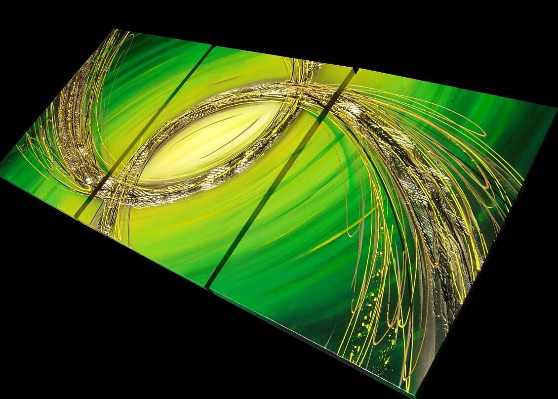 Opera realizzata in tecnica mista 3d polimaterica ,mediante l'utilizzo di colori acrilici , olii e metallici, pigmenti metallici , oro . L'opera , e' composta da 3 tele 60 x 80 x 4 cm . Il prezzo di vendita e' di 290 ,00 euro+spsp