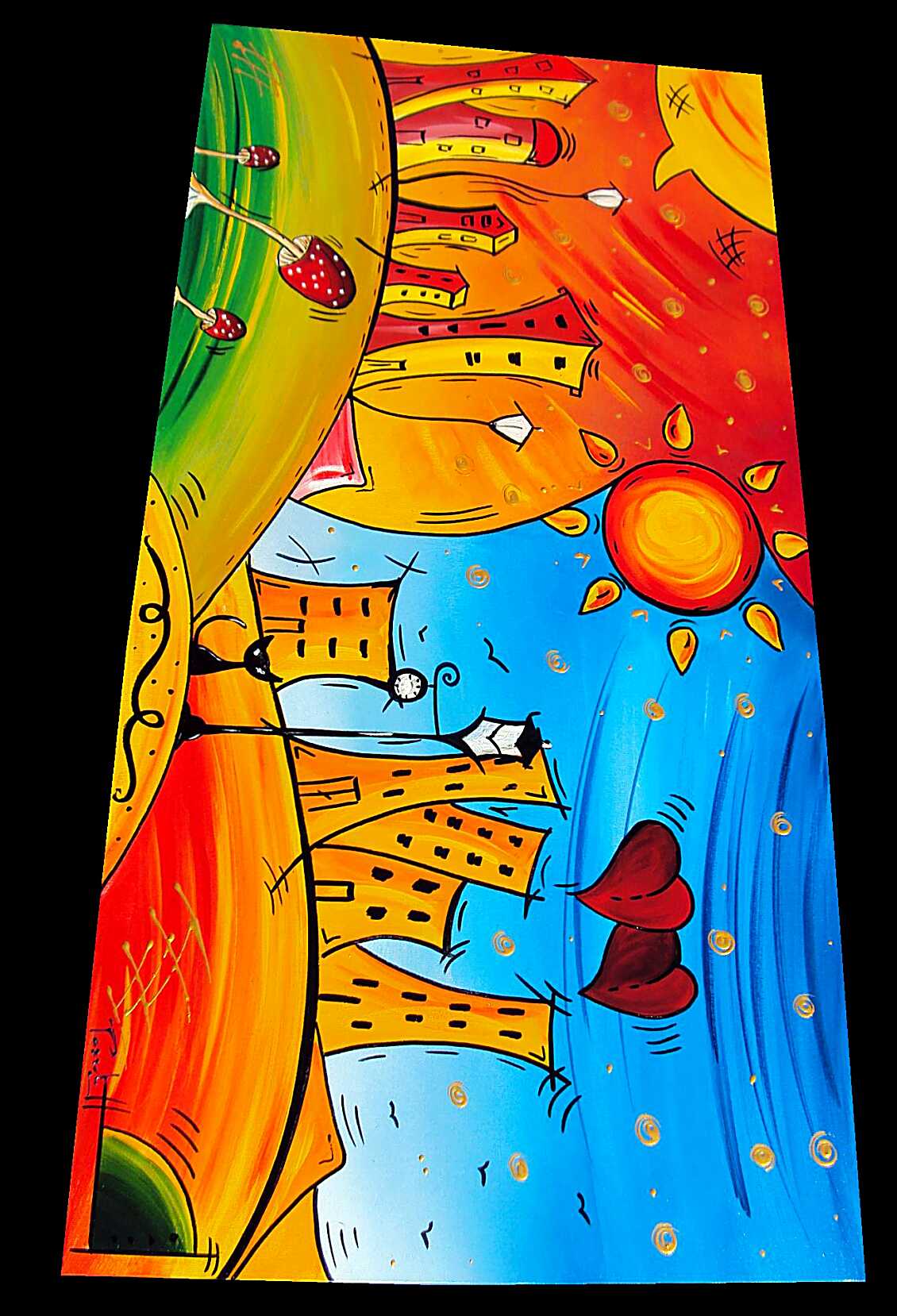 Opera realizzata in tecnica mista ,mediante l'utilizzo di colori acrilici , olii e metallici . L'opera , e' composta da 1 tela 100 x 50 x 2 cm . Il prezzo di vendita e' di 220 ,00 euro+spsp