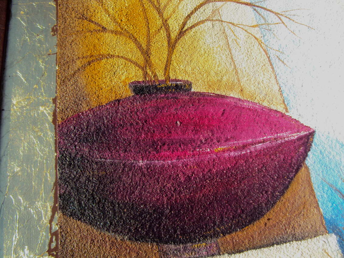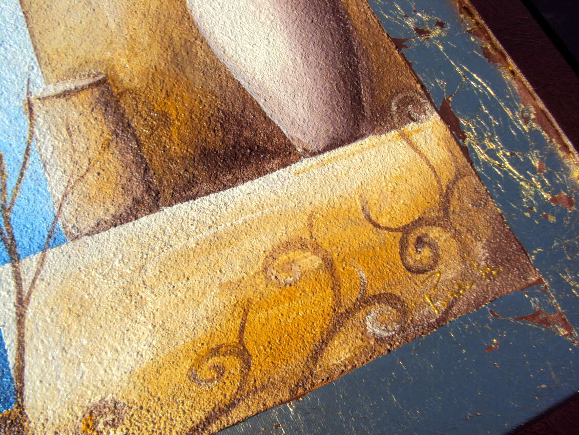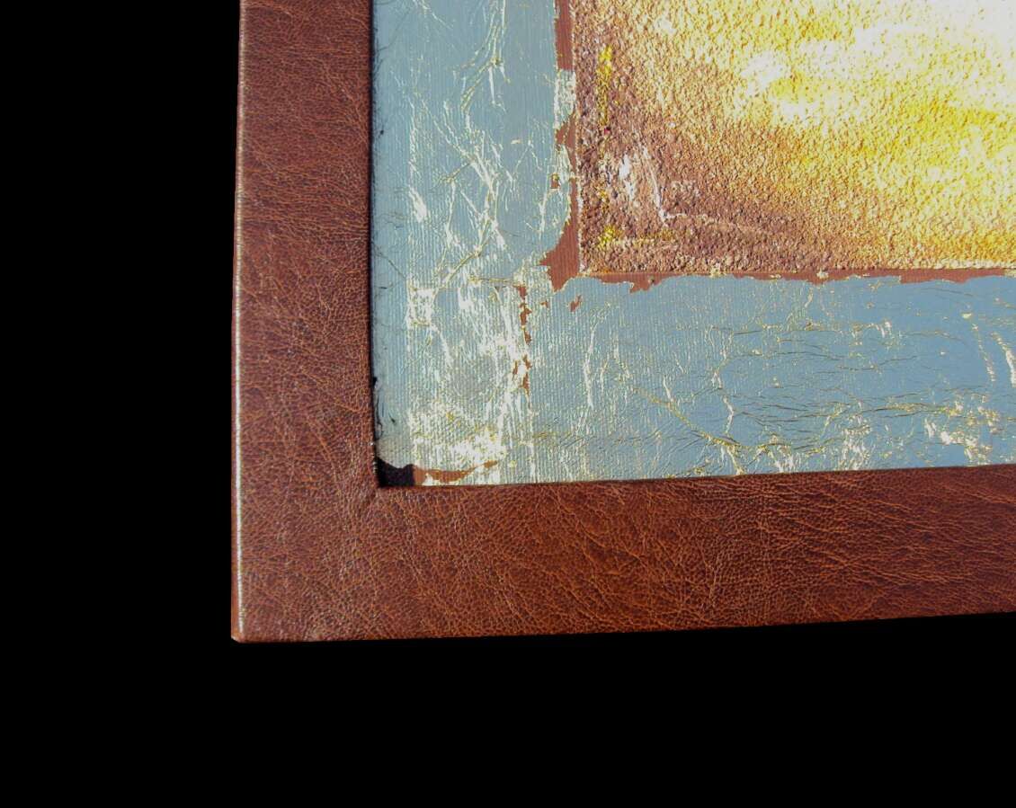 Opera realizzata in tecnica mista ,mediante l'utilizzo di colori acrilici , olii e metallici , paste acriliche resine epossidiche, inserti , sabbie di fiume, cornice in pelle ecologica. L'opera , e' composta da 1 tela 80x80x 2 cm . Il prezzo di vendita e' di 250 ,00 euro+spsp