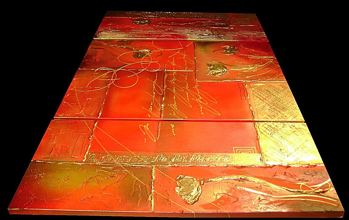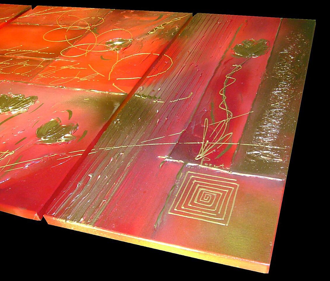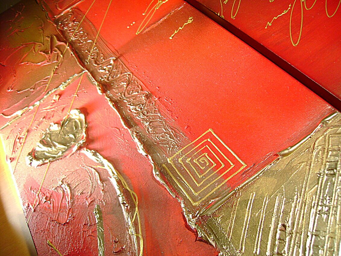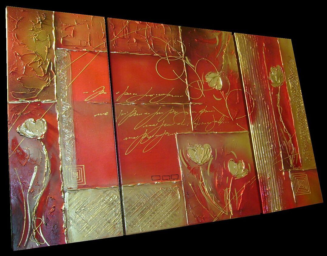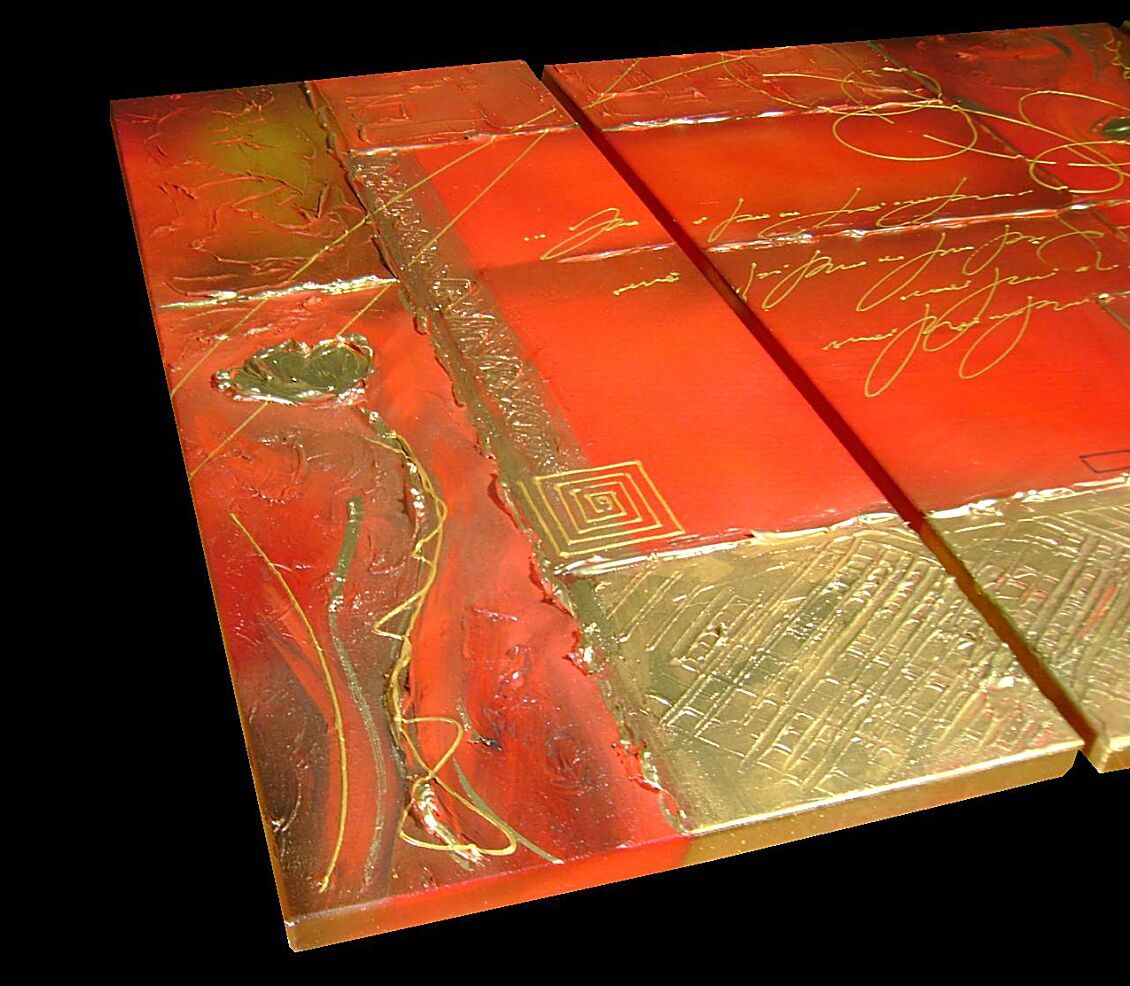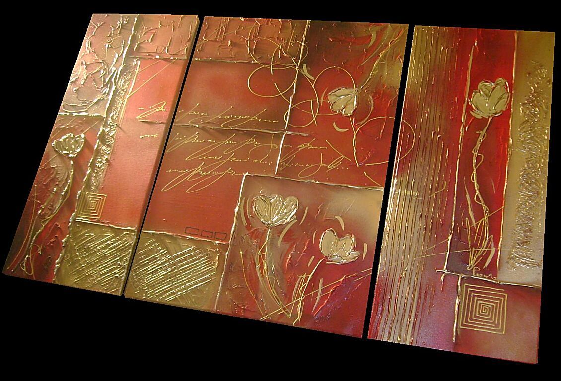 Opera realizzata mediante Tecnica tridimensionale mediante utilizzo di paste acriliche , resine , inserti e colori olio+acrilici+metallici .- Opera composta da 2 tele da 30 x 70 x 2 cm + 1 tela 50 x 70 x 2 cm - 190,00 euro +spsp